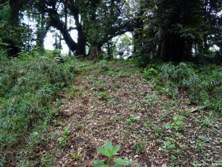 ![]() 前方部から後円部を見る くびれ部を一部削平して八幡社が建つ |