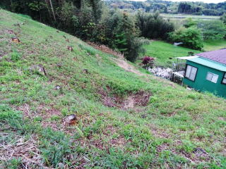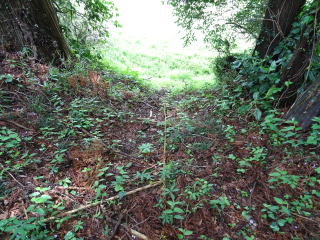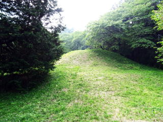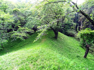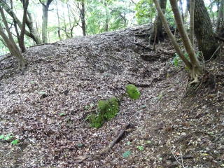 ![]() 後円部の横穴式石室跡 斜面から見る |
