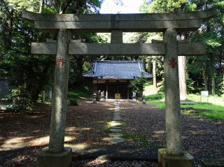 南側道路沿いに八幡神社鳥居がある。