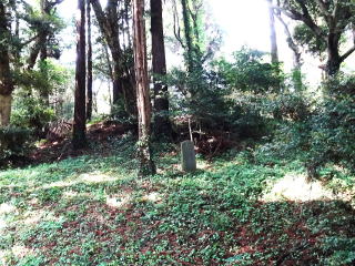 ![]() 後円部東側下段テラス面には 発掘調査を記念した石碑が立てられている。 |