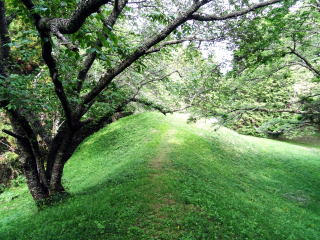 ![]() 周溝から墳頂を見上げる |