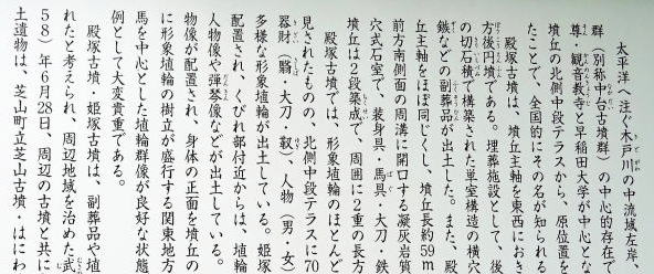 殿塚・姫塚古墳は、九十九里平野中央を流れる木戸川東岸の標高40mの台地上に位置している。 17基の古墳で構成される国指定史跡・芝山古墳群の中心的な古墳。 昭和31年発掘調査 2024(令和6)年8月、殿塚古墳・姫塚古墳出土埴輪が国重要文化財(考古資料)に指定された。 |