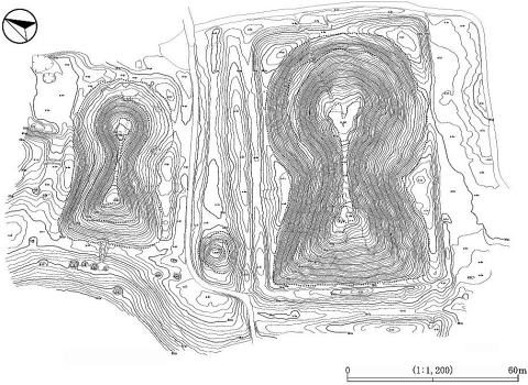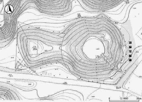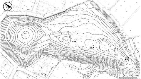 ![]() 山室姫塚古墳 墳丘測量図 右下は 大塚2号墳 (分布調査報告書から) |