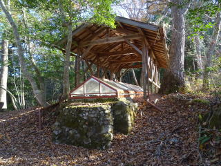 竪穴式石室が覆い屋の中に保存されている。