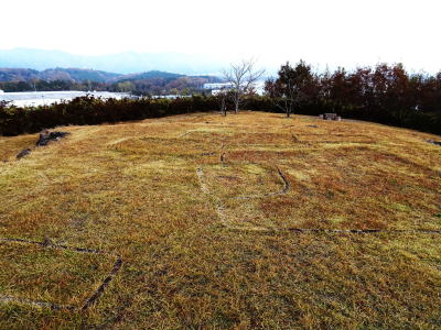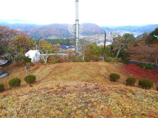 ![]() 前方部から後方部を見る 墳丘上には埋葬部表示がある。 景色のいい場所に 造られている |