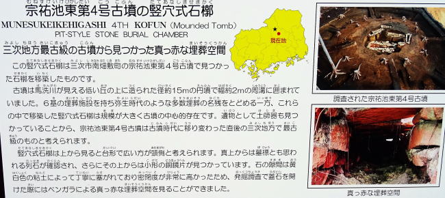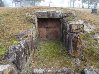 | 宗祐池東(ソウスケイケヒガシ)第4号古墳の竪穴式石槨 (移築) 直径15mの円墳 幅2mの周溝 6基の埋葬施設があり、その中の規模が大きく中心的な竪穴式石槨を移築