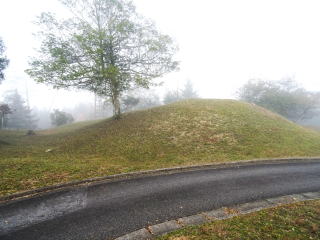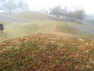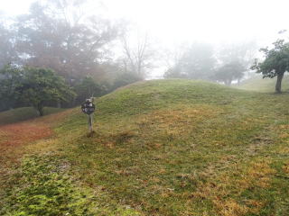南西約5kmにある糸井大塚古墳へ。朝靄の中の古墳見学。